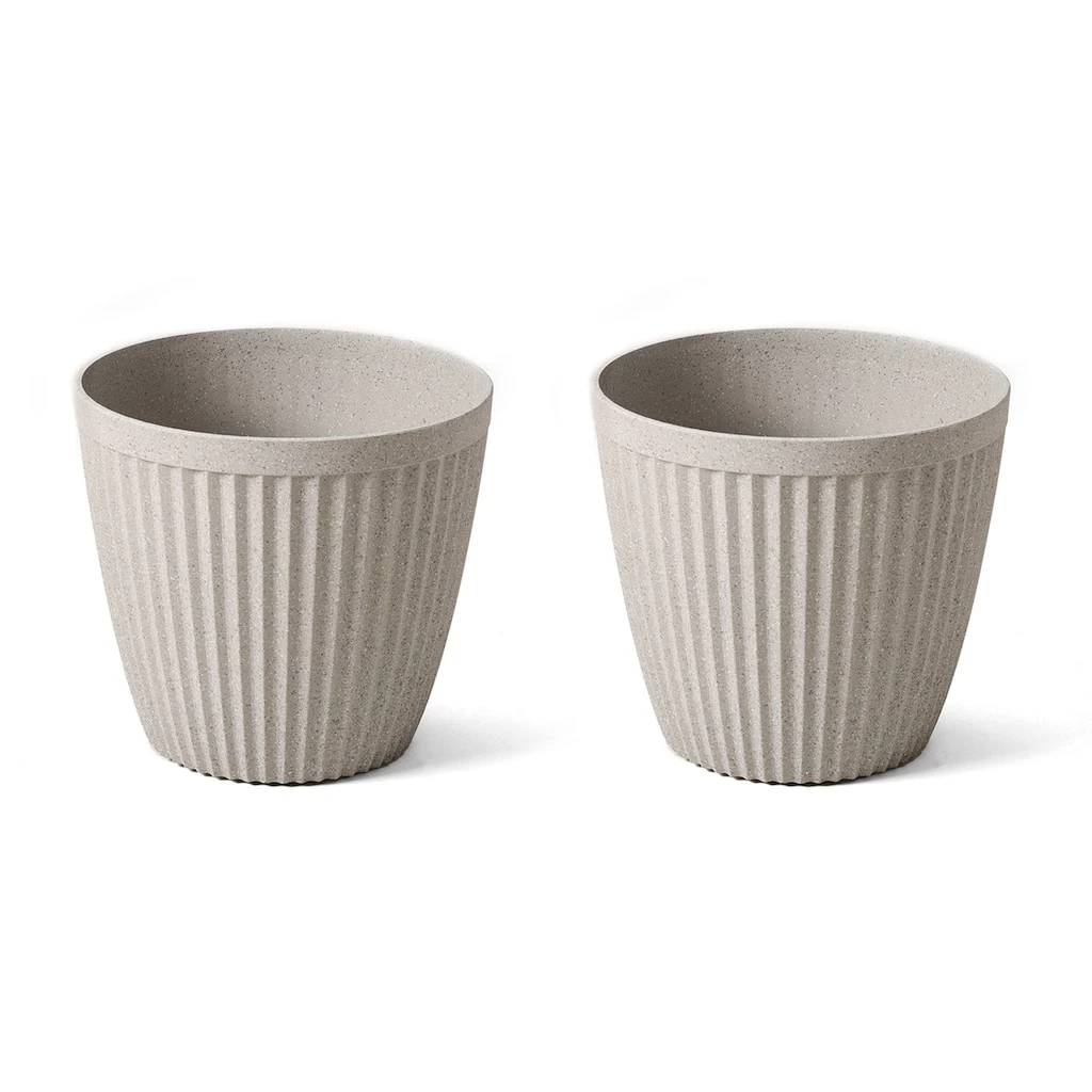 Enhance your indoor or outdoor space with this stylish set of two plastic round fluted planters. It’s crafted of 100% recyclable PE and stone mixture, which is eco-friendly, safe and healthy. Compared with traditional planters, it is lightweight, chip-resistant, more durable and with sturdy UV protected structure, ideal for all year around. It’s featured with imitation terracotta, the natural finish is more in line with various decoration styles. A pre-drilled drainage hole is included. Plant your favorite greenery or blooms to create an intriguing and vivid landscape that is sure to convert your your garden, patio or home space to be a beautiful, delightful and relaxing environment.