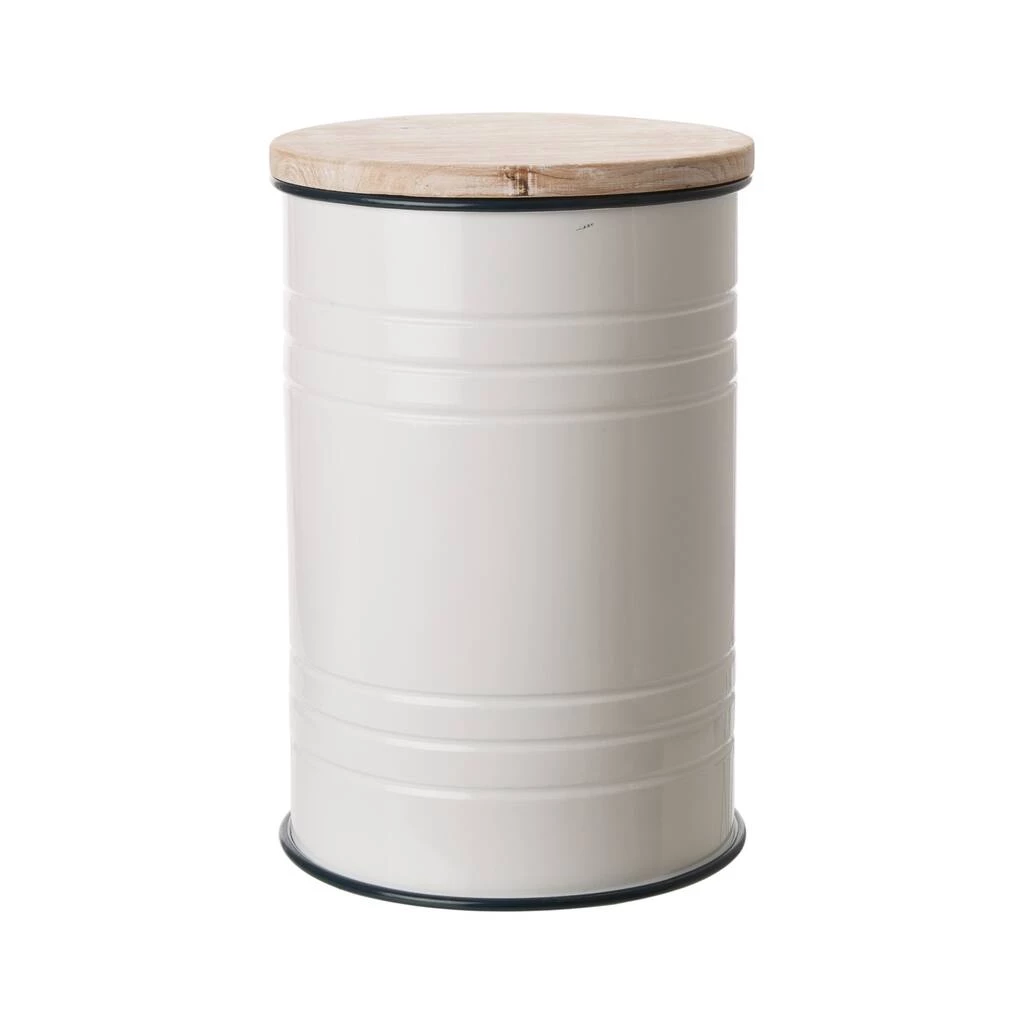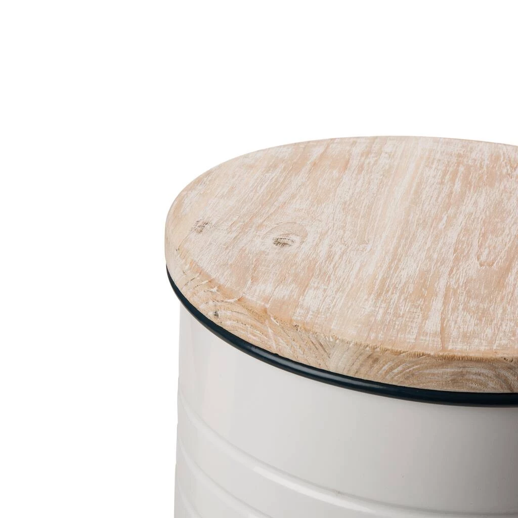 This metal enamel stool set will add a rustic country charm anywhere you choose to put it in your home or cabin. Keep items fresh or simply use them as a decorative accessory. Crafted of metal painted white in a rustic, distressed finish.