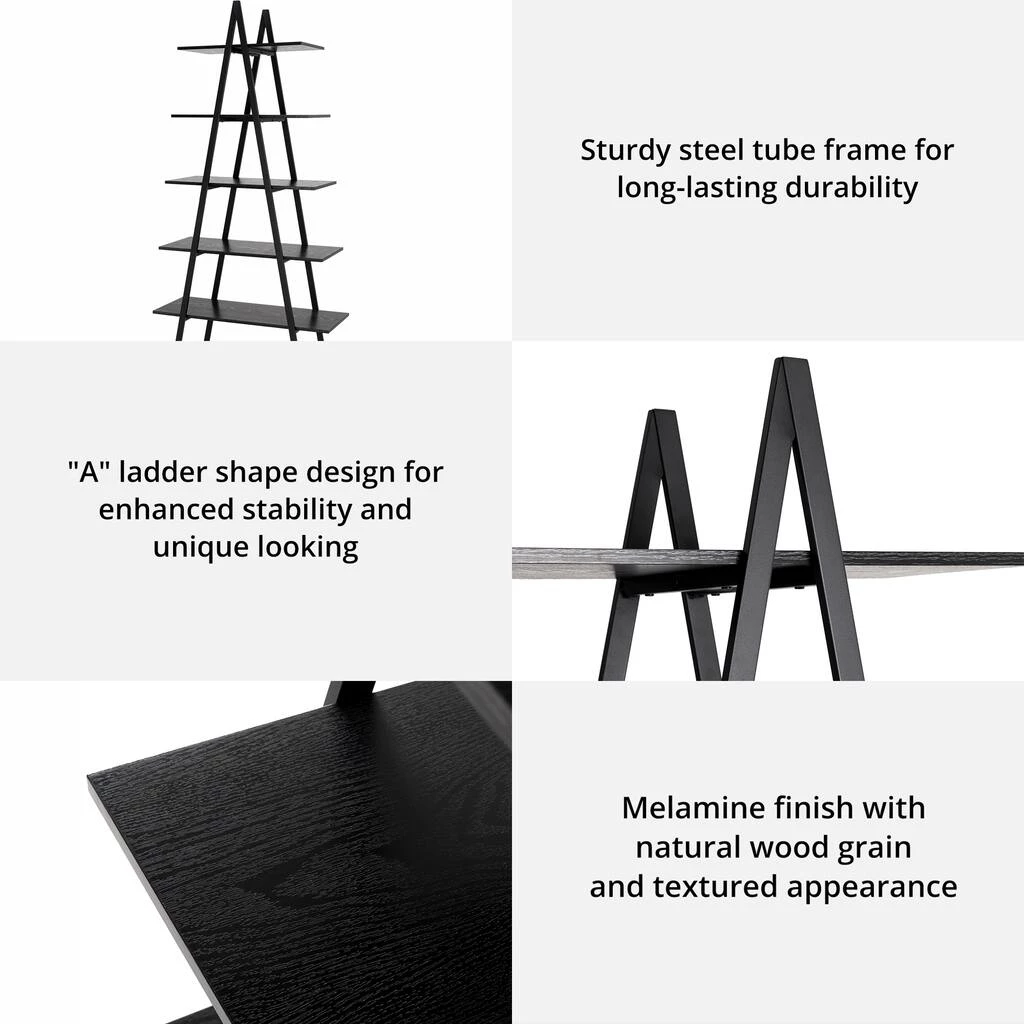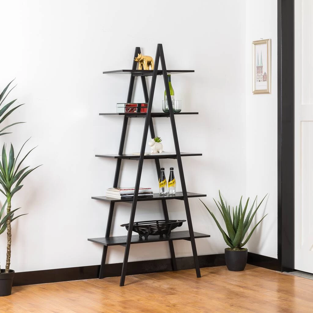This A framed 5-tier bookcase is a nice space helper and decoration master for your home and office. It can meet your storage needs as well as displaying needs to largest extent, which is used as planter stand, bookcase, shelf and organizer as a perfect addition to living rooms, bedrooms, kitchens, or any rooms that needs extra storage space. Features elegance, simplicity and practicality, and the textured appearance and natural wood grain surface can perfectly add a sense of advance to your house or office.
