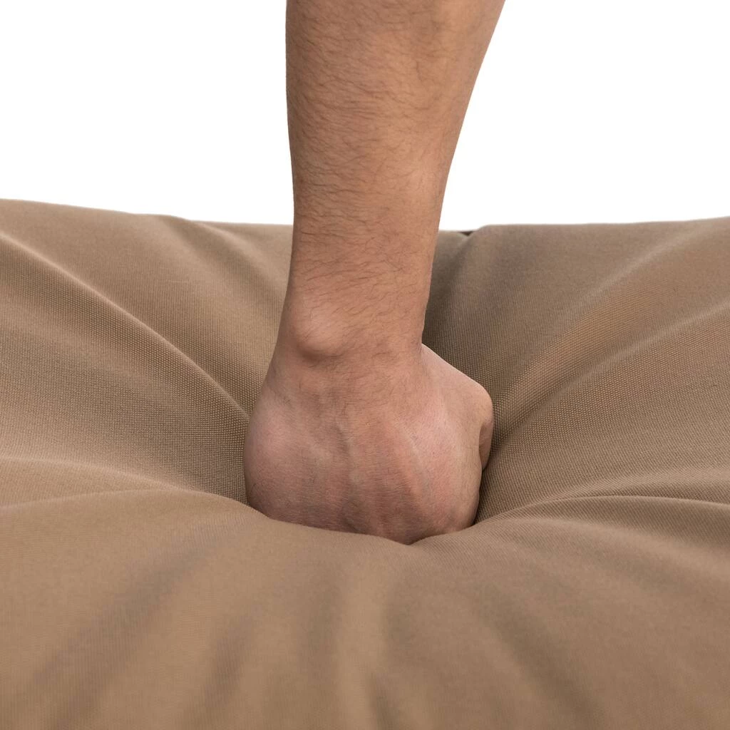 - Mildew-resistant short fiber polyester with fiber-foam cushion fill