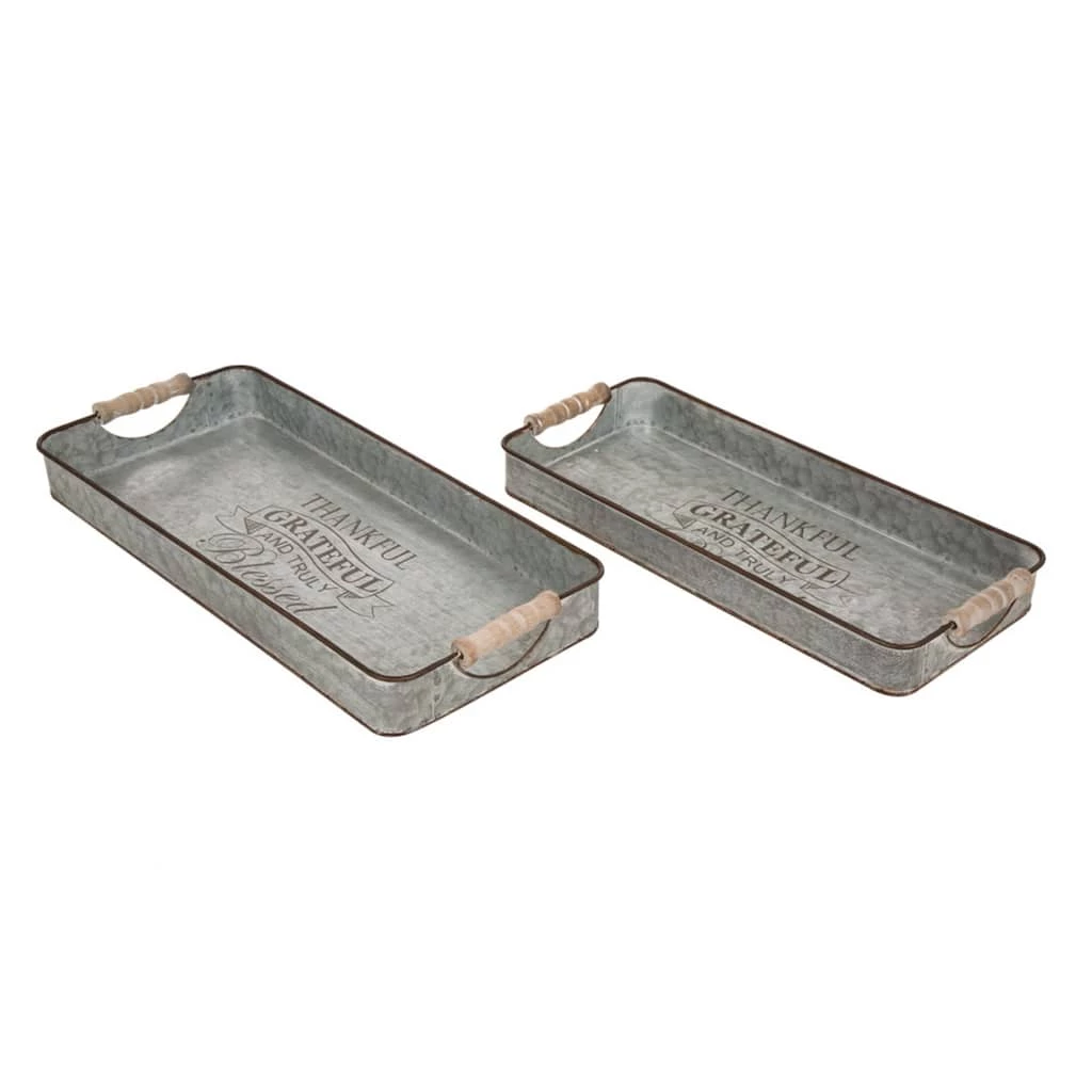 Serve up some seasonal style with this set of rectangle galvanized trays. Perfect for your favorite fall favorites, the tray is adorned with “Thankful, Grateful and Truly Blessed.”