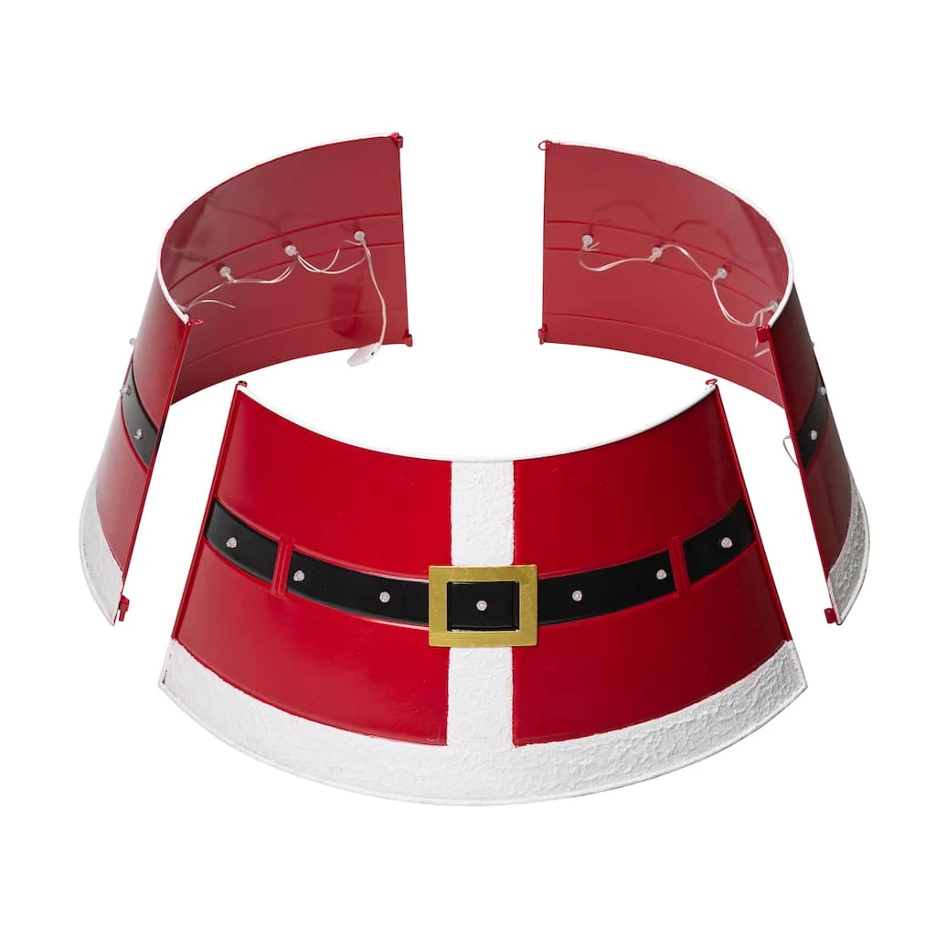 Add the final touch to your Christmas with this Santa belt tree collar with lights. It slightly flares out toward the base, which creates simple framing and covers the tree’s stand. Made from sturdy metal, you can use this collar for seasons to come.