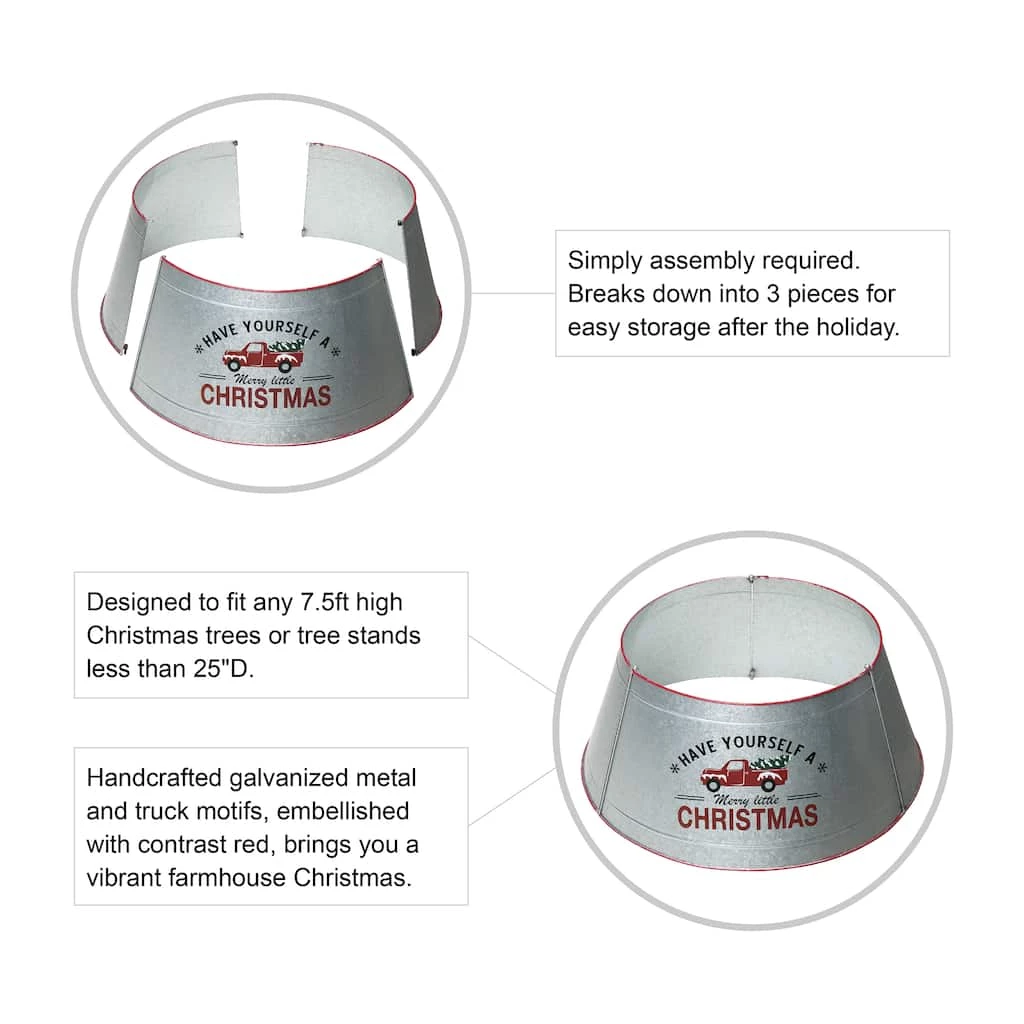 Add the final touch to your modern Christmas with this metal woven tree collar. It slightly flares out toward the base, which creates simple framing and covers the tree’s stand. Made from sturdy metal, you can use this collar for seasons to come. The handcrafted glossy metal woven finish brings luxury and modern style to your Christmas tree. Breaks down into 3 pieces for easy storage after the holiday.
