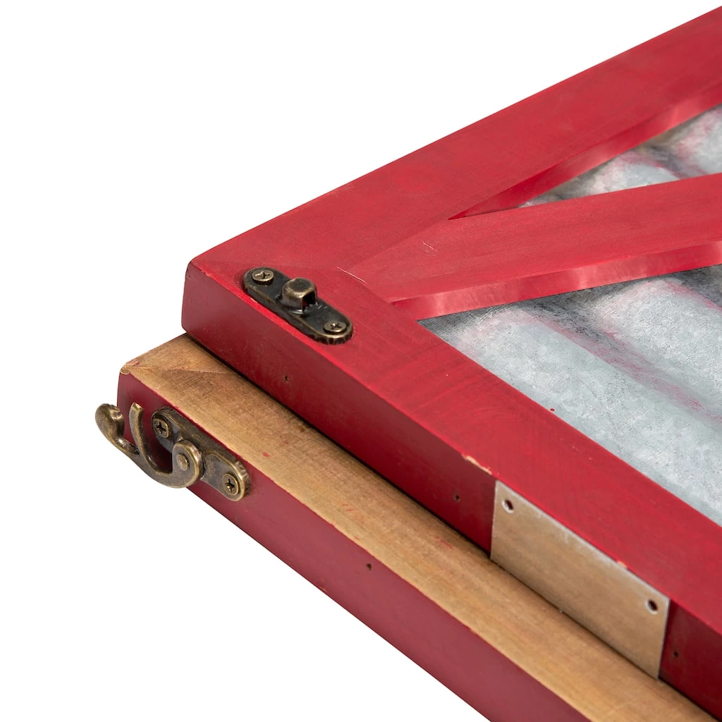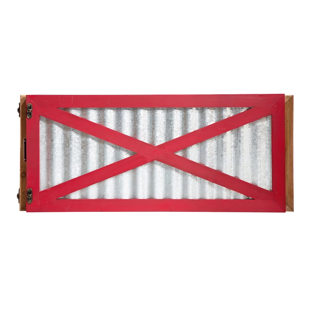 The handcrafted galvanized metal and contrast X-shape red wood frame brings you an industrial farmhouse Christmas vibe. Breaks down into 2 pieces for easy storage after the holiday.