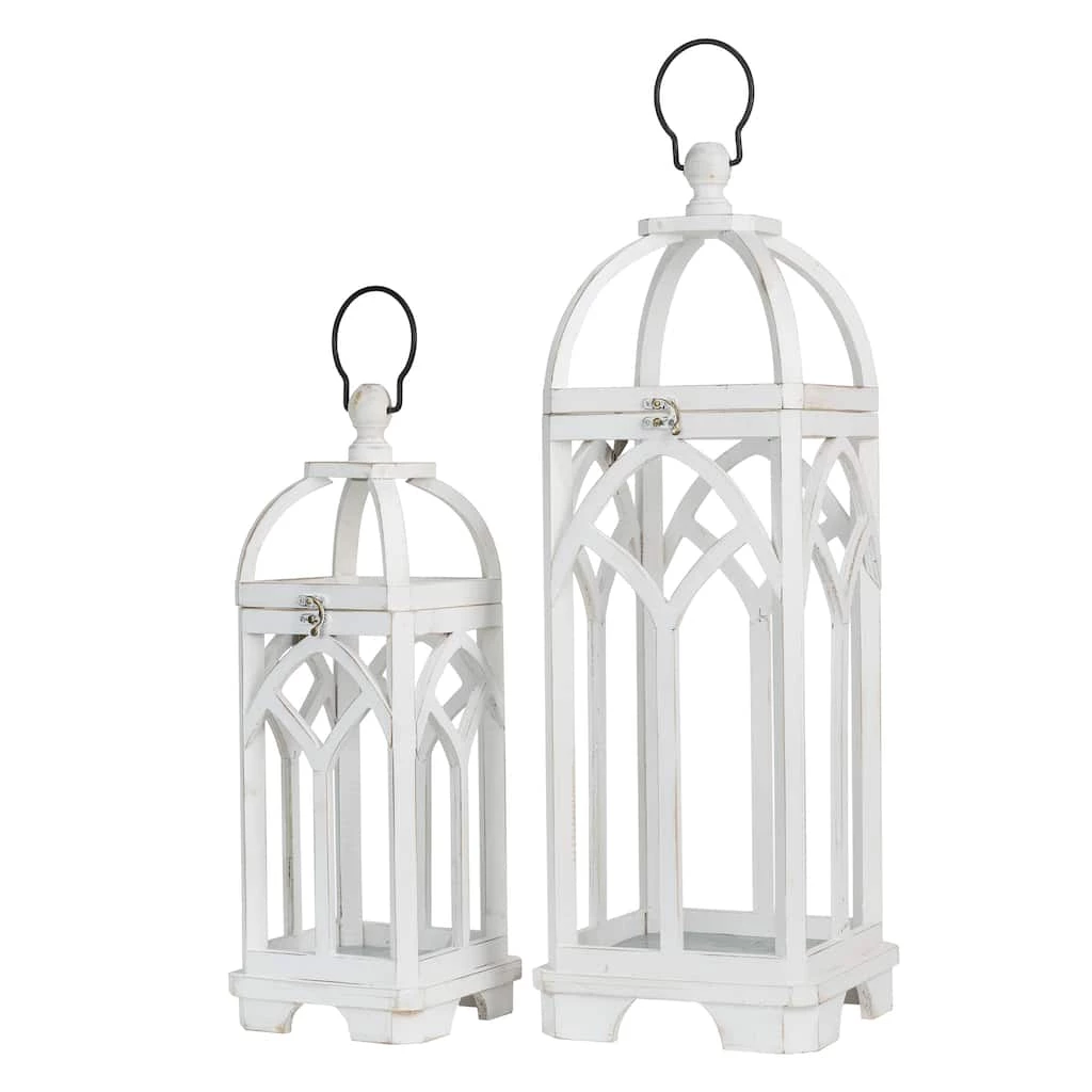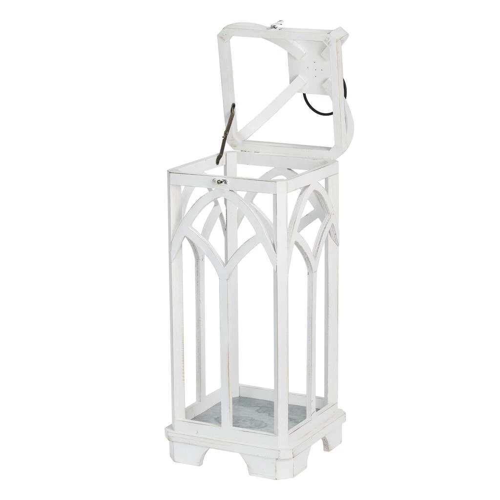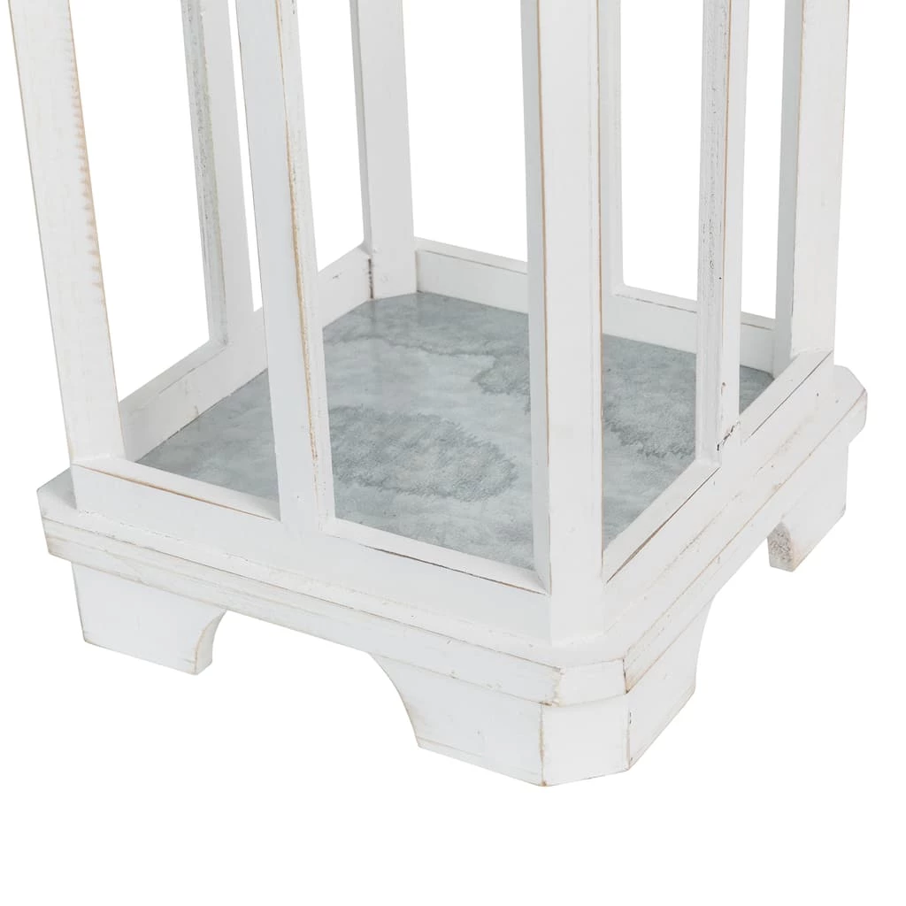 Featuring white wash wood church windows without glass, farmhouse style with unique and distressed finished, this lantern easily creates a warm inviting glow anywhere in your home, porch or yard. It’s made of natural fir wood frame with brown metal top ring, swing latch and premium hinges connected. With its flame-retardant galvanized metal floor inside, it will provide you a safety warm home when lighting with kinds of candles. It is a classic dΓ©cor lantern when candles lighted, and also it can be dressed up to an amazing dΓ©cor piece with pot plants or succulents inside.