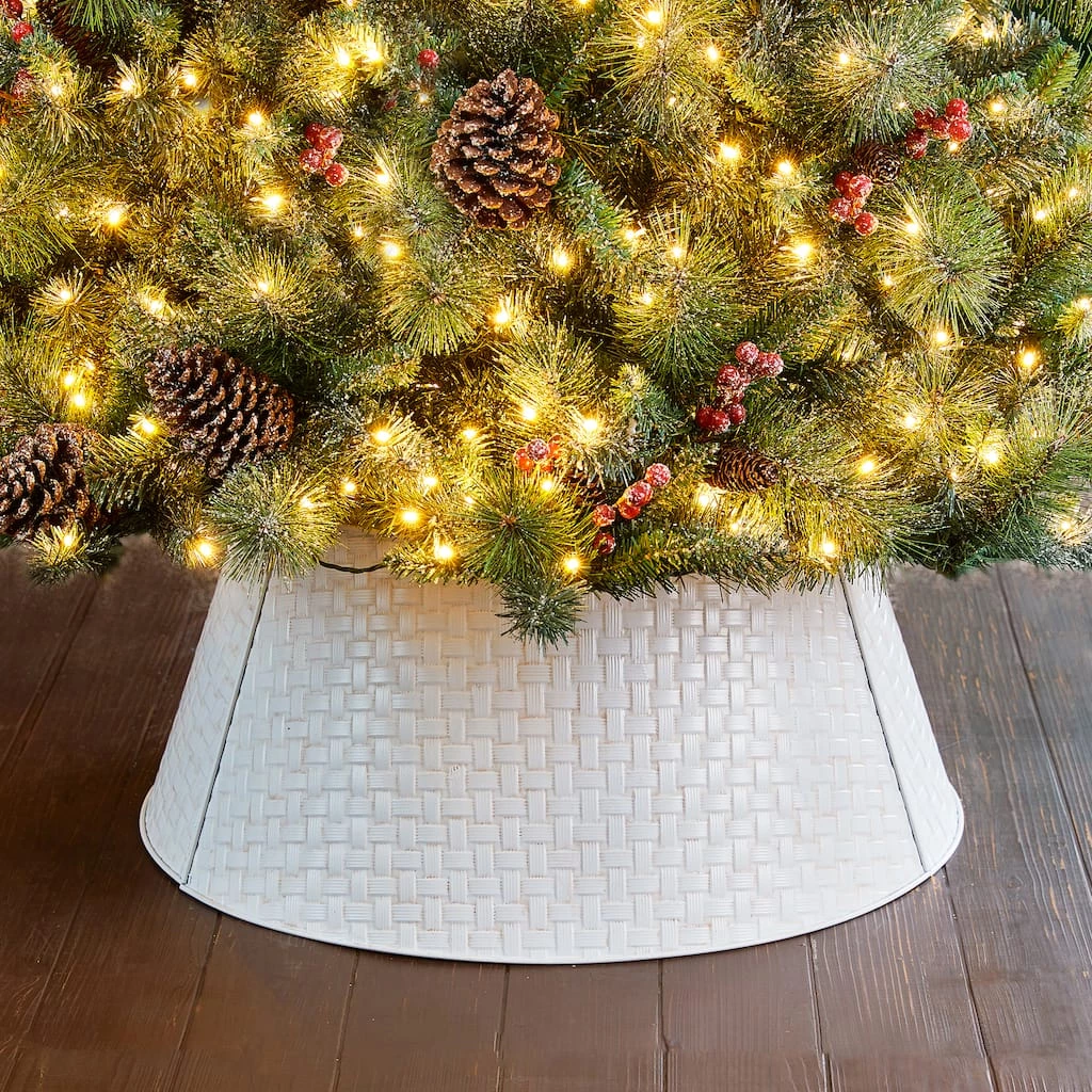 Add the final touch to your modern Christmas with this metal woven tree collar. It slightly flares out toward the base, which creates simple framing and covers the tree’s stand. Made from sturdy metal, you can use this collar for seasons to come. The handcrafted glossy metal woven finish brings luxury and modern style to your Christmas tree. Breaks down into 3 pieces for easy storage after the holiday.