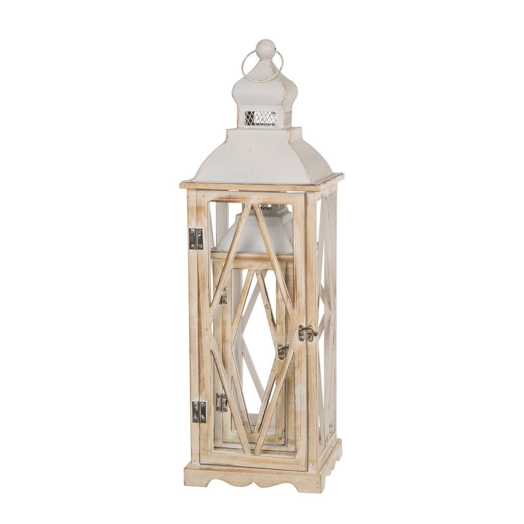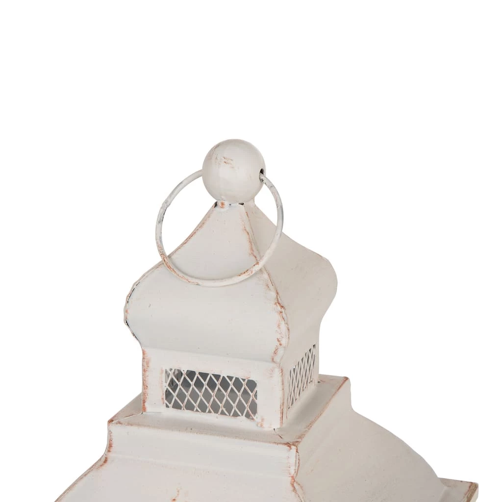 From the Farmhouse collection, welcome your guests with this subtle and stylish lantern set that is full of country style charm. Rustic galvanized metal details, swing latches and a delicate ring on the top adds welcoming appeal to these relaxed lanterns. Designed to showcase your candles with a detailed carry handle at the top allows for optional hanging. Open the hinged door or roof to add candles inside and set off gentle shadows and light from within the white walls.