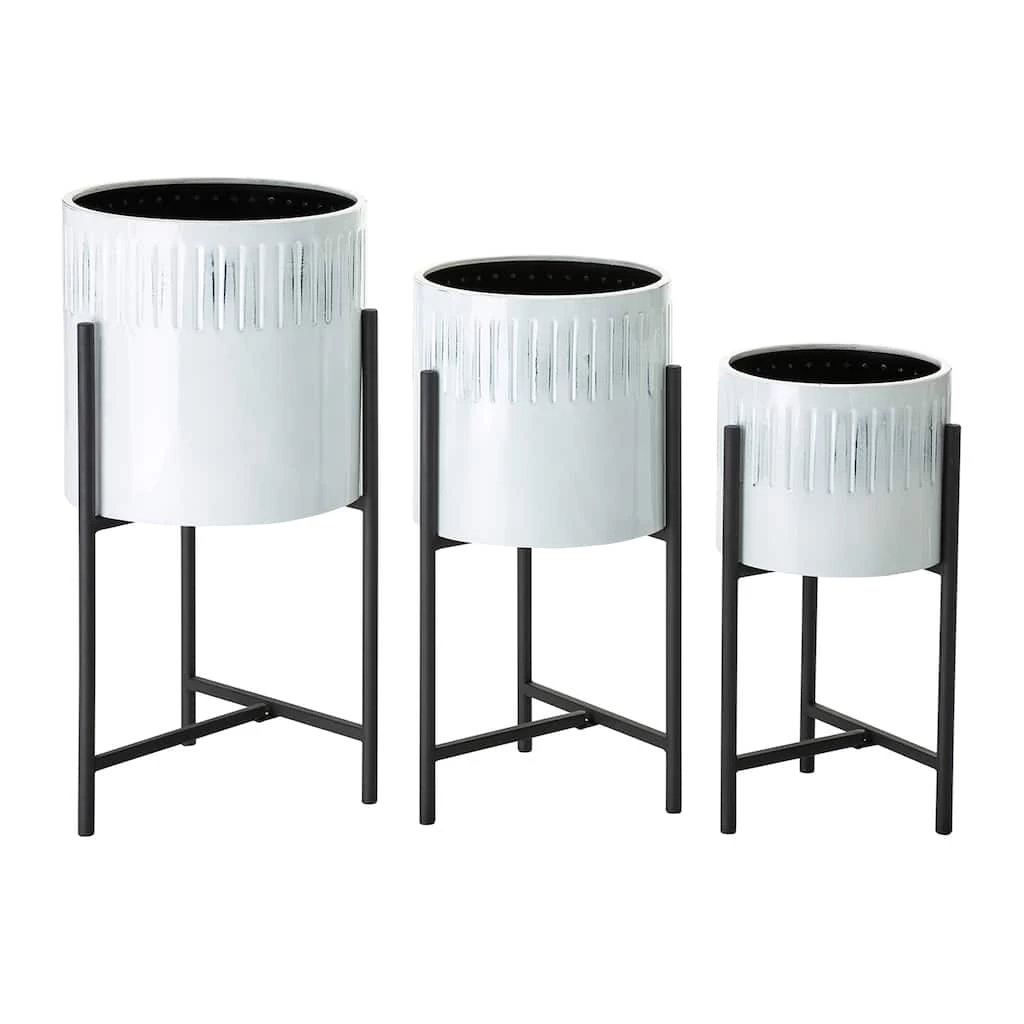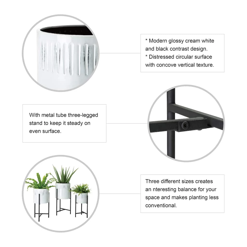This three piece set includes plant stands of various sizes. The chic contemporary design features circular surfaces with concave vertical texture accents, with a three-legged stand to keep it steady on even surfaces. Three varied sizes make these planters ideal for displaying as the overall landscape, but using them individually to decorate more room works just as well. Easy to place on your favorite sunny spot to display your greenery.