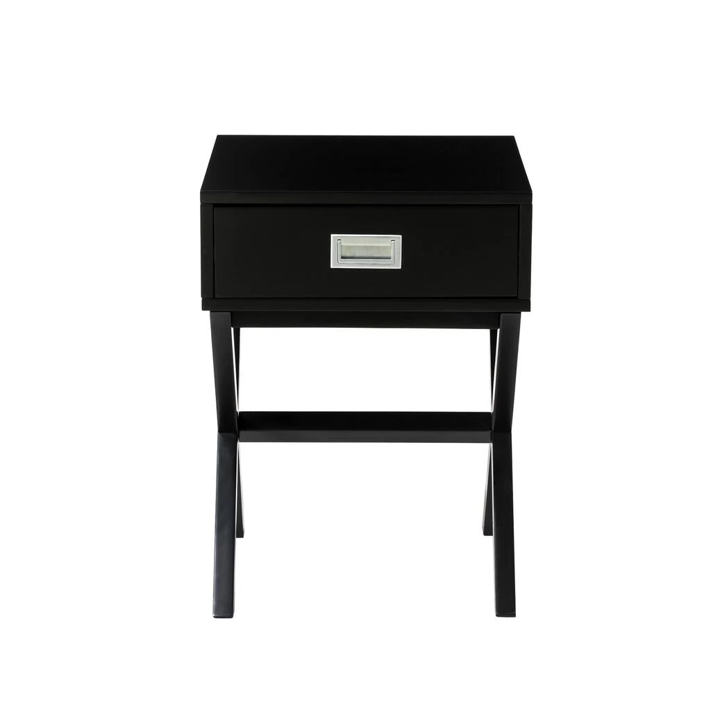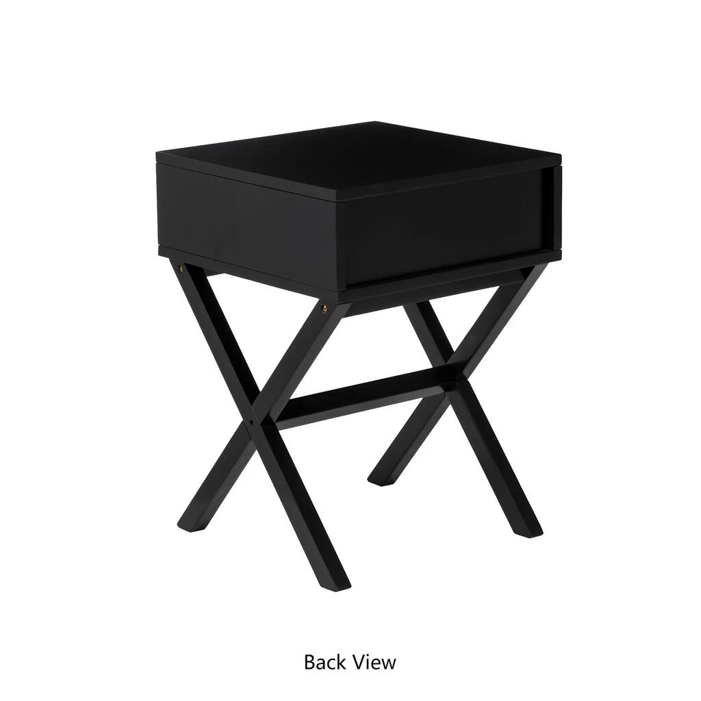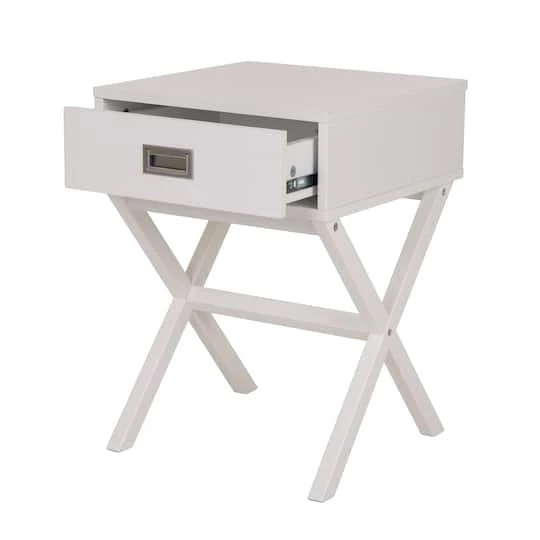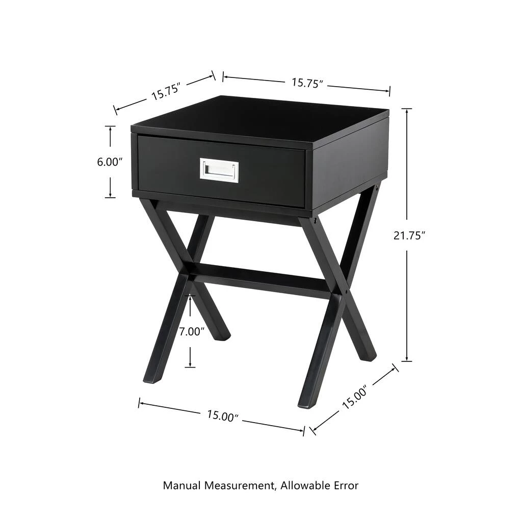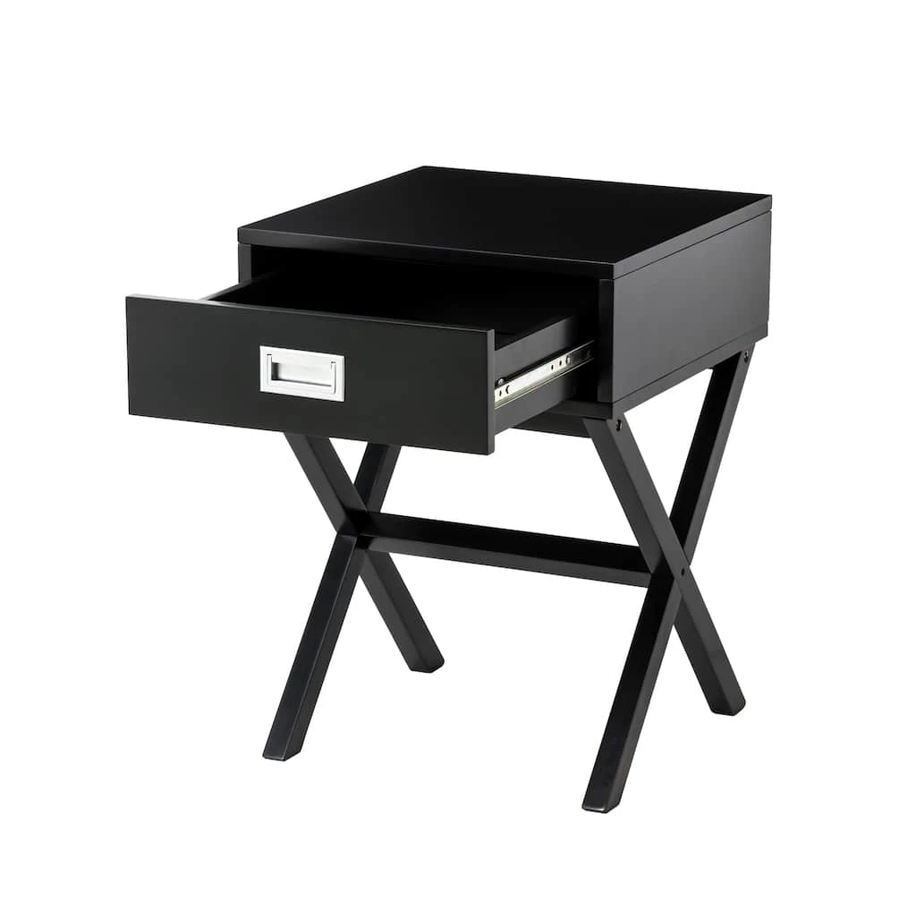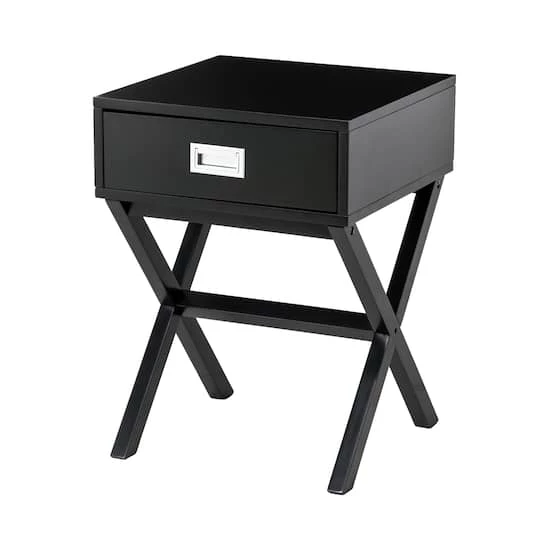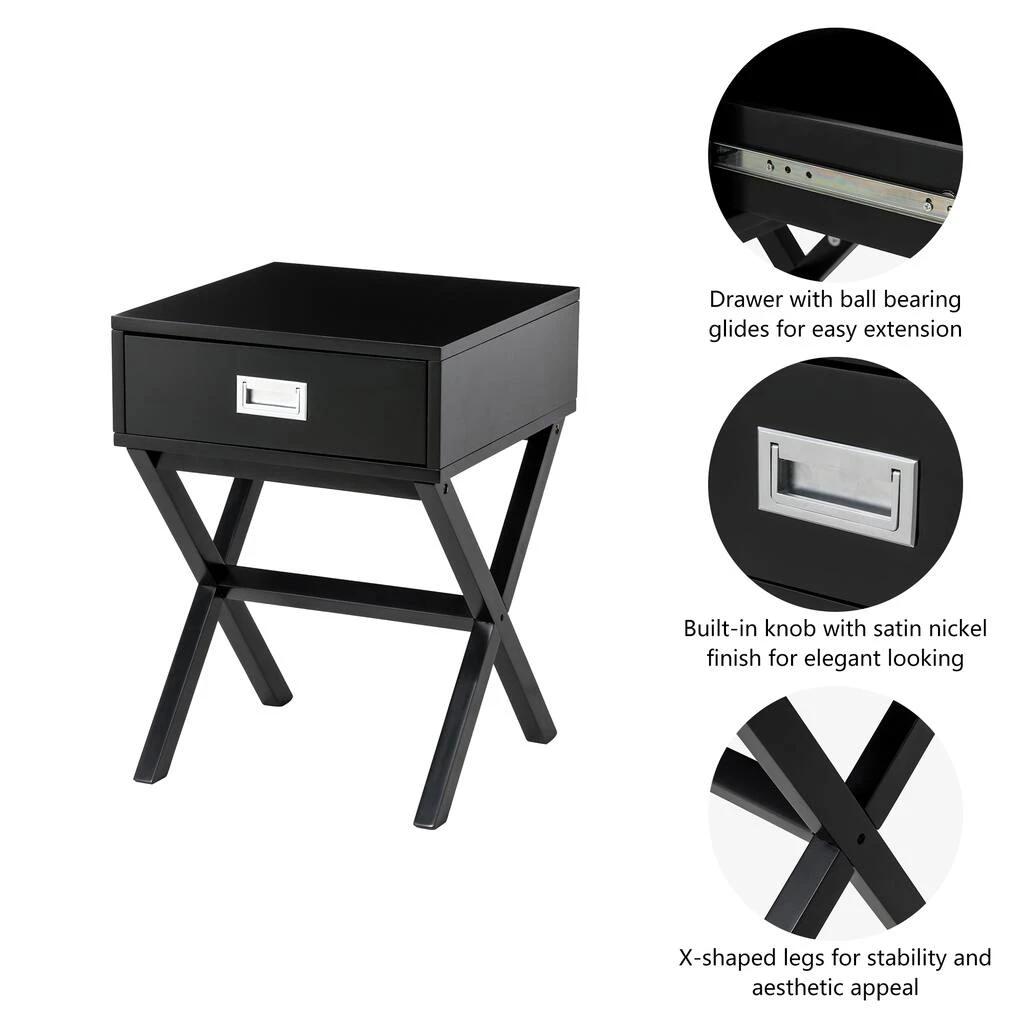 Bring mid-century modern style to your sofa’s side or act as a nightstand in the master suite. This end table features a clean-lined rectangular silhouette on a trellis base with X-shaped legs. Featuring an inset metal pull, one drawer offers plenty of storage for smaller accessories, while the smooth tabletop provides a perfect platform for framed photos or a stylish lamp. Drawer equipped with ball bearing gliders for easy open and close. The night stand comes ready to assemble with tools and instructions. You can also work together with your family.
