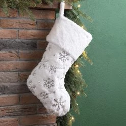 Wholesale π Glitzhome® 21″ White Fleece with π Christmas Tree & Snowflake Stocking, 2ct. π
