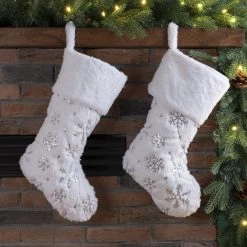 Best reviews of π Glitzhome® 21″ White Plush with Snowflake π Christmas Stocking, 2ct. β