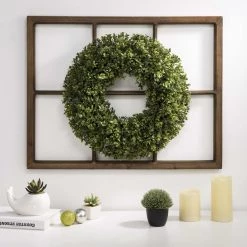 Budget π Glitzhome® 22” Wooden Window Frame with Boxwood Wreath π