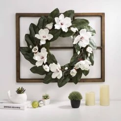 Best Pirce π Glitzhome® 22” Wooden Window Frame with Magnolia Wreath β