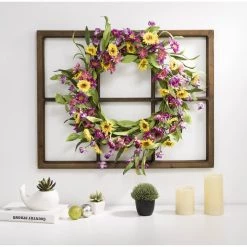 Deals 👍 Glitzhome® 22″ Wooden Window Frame with Chrysanthemum Wreath ⌛