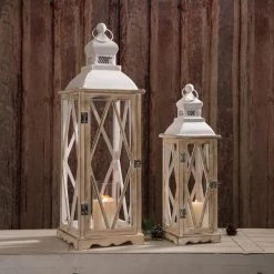Budget β Modern Farmhouse White Wooden Shutter Lantern Set, 25.5″ & 19″ by Glitzhome π