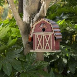 Budget π Glitzhome® 10″ Hanging Wooden Red Barn Garden Birdhouse π―